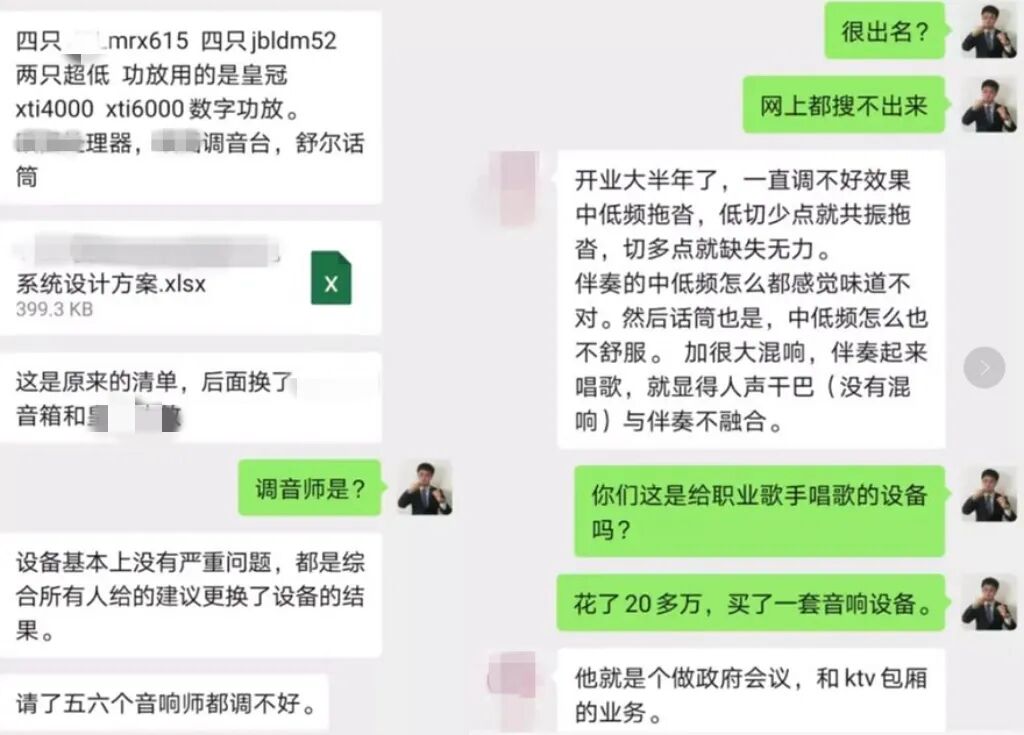 客户想要看下本地的KTV音响工程案例,调音师自己都对演唱效果没信心。