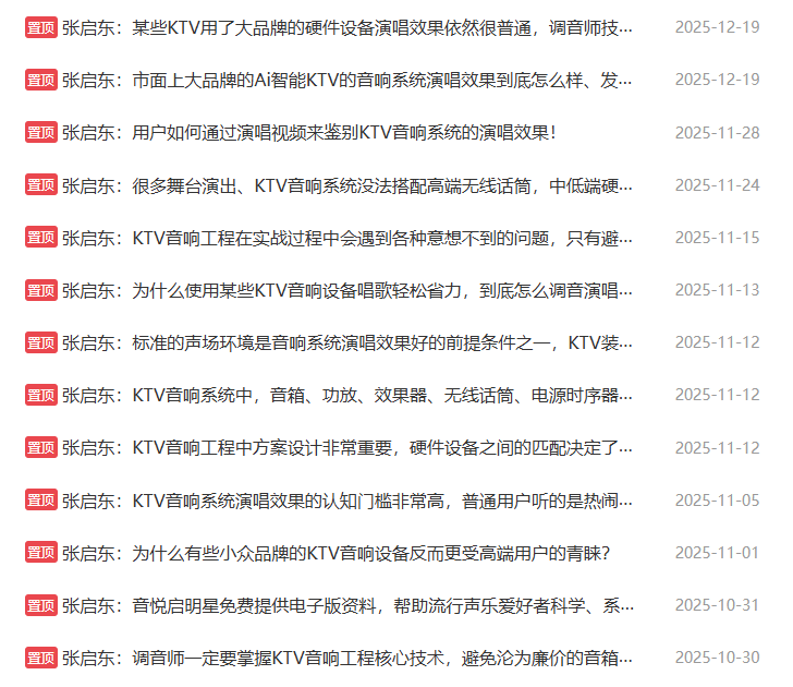 我们把这些年来KTV音响工程里面遇到的疑难杂症和处理方法全部更新到了音悦启明星网站里面。