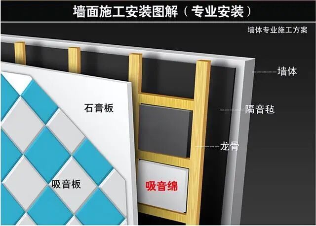 在龙骨填棉之后,可以在其表面加吸音板(槽木吸音板、聚酯纤维吸音板、布艺软包吸音板等),隔音之后再加上吸音板的吸音效果,更加完美,同时吸音板可以起到很好的装饰作用。