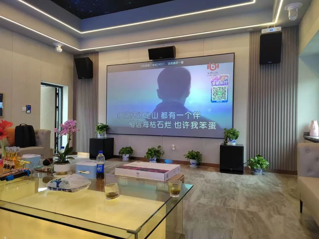 在房间中设置大型液晶电视或投影仪,以提供KTV歌曲的歌词和视频演示。